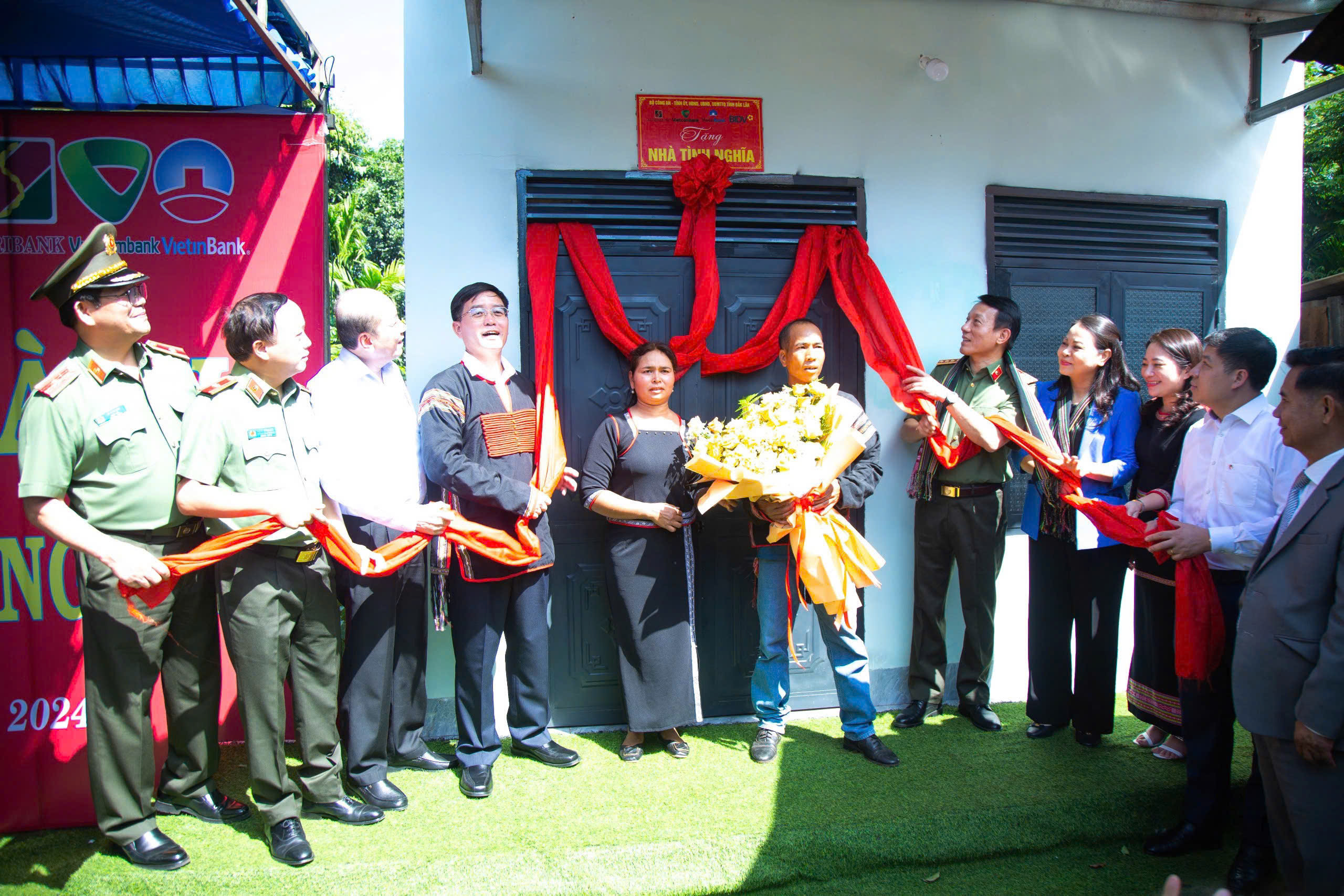 Chủ tịch Công đoàn Vietcombank (thứ hai từ phải sang) cùng lãnh đạo Bộ Công An, lãnh đạo Ủy ban TW MTTQ Việt Nam và lãnh đạo tỉnh Đắk Lắk trao tặng nhà tình nghĩa. |