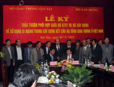 Thực hiện chỉ đạo của Thủ tướng Chính phủ, Bộ Xây dựng và Bộ Giao thông vận tải đã có lễ ký kết phối hợp tăng cường sử dụng xi măng trong xây dựng kết cấu hạ tầng giao thông ở Việt Nam. Với mục tiêu ưu tiên sử dụng sản phẩm hàng hóa sản xuất trong nước, thúc đẩy sản xuất kinh doanh, kiềm chế nhập siêu, tiết kiệm năng lượng và đảm bảo vệ sinh môi trường.