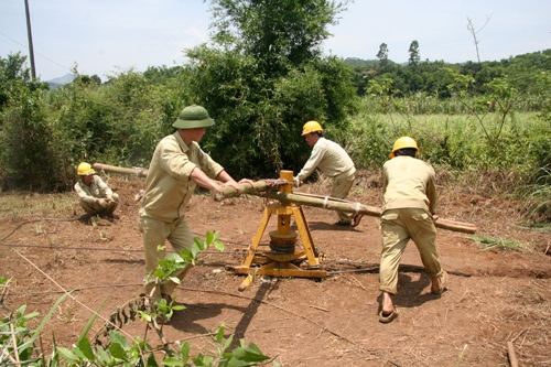 Lau vội những giọt mồ hôi đang lăn dài trên mặt, bên chiếc cối xay tự chế để đưa dây dẫn lên đỉnh cột điện, anh Trần Hồng Cường - Đội trưởng Đội Đường dây Xuân Mai tếu táo chia sẻ: “Các anh biết không, vất vả nhất chính là công việc tời dây dẫn, nâng hạ dây dẫn. Ở nước mình vẫn còn khó khăn nên phải dùng tời thủ công, cần huy động nhiều người mới đủ sức cho dây leo lên cột được”.