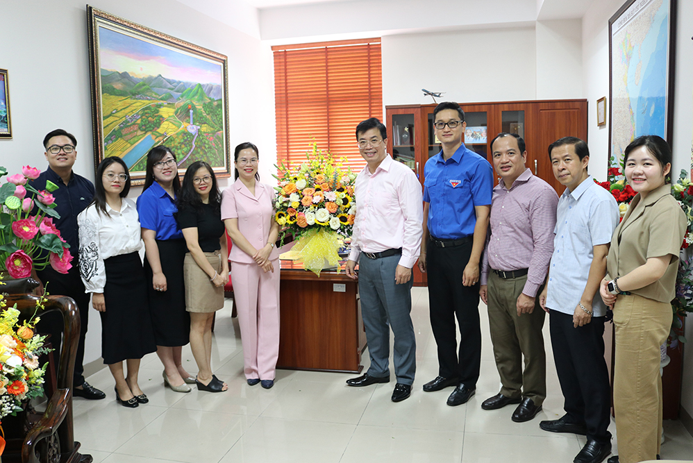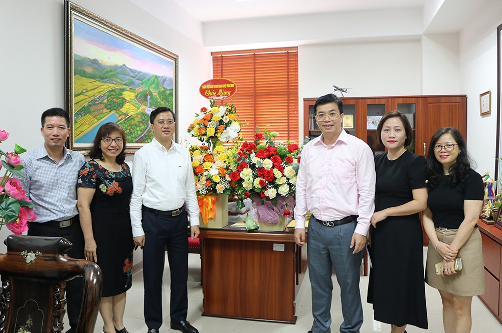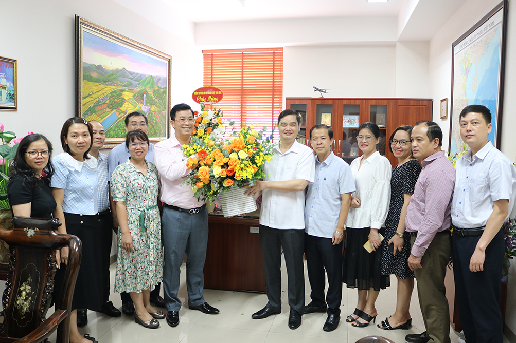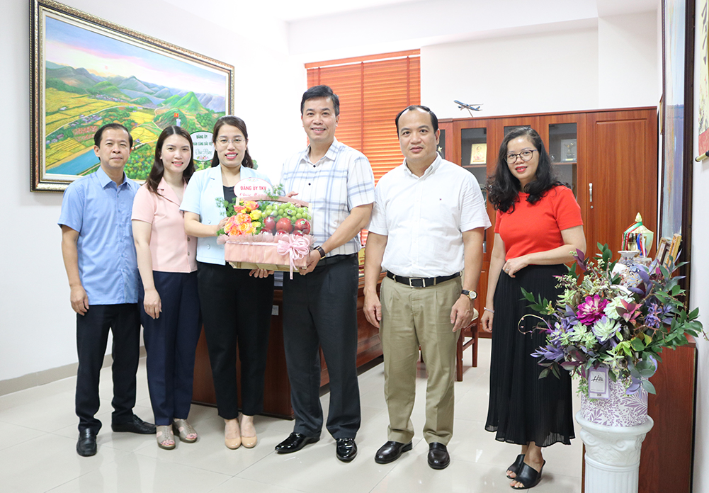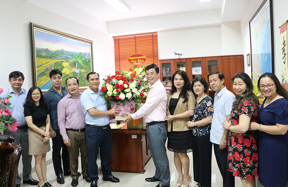 | Đồng chí Nguyễn Long Hải, Bí thư Đảng uỷ Khối và các đồng chí Phó Bí thư Đảng uỷ Khối; lãnh đạo các ban, đơn vị tặng hoa chúc mừng Ban Tuyên giáo nhân Ngày truyền thống 01/8. |