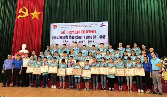 Nhằm động viên, khích lệ kịp thời các em học sinh có thành tích tốt trong học tập và rèn luyện, ngày 04/8/2018, Đoàn thanh niên Tổng công ty Sông Đà đã tổ chức Lễ tuyên dương học sinh giỏi năm học 2017 – 2018 cho các em là con cán bộ công nhân viên đang công tác tại Tổng công ty. Trong năm học này với ý nghĩa năm 2018 là năm kỷ niệm 70 năm Bác Hồ ra lời kêu gọi thi đua ái quốc, Đoàn thanh niên Tổng công ty đã bình xét và chọn ra 70 em học sinh, sinh viên có thành tích học tập tiêu biểu xuất sắc tham dự Lễ Tuyên dương và hành trình về nguồn, báo công tại tượng đài Chủ tịch Hồ Chí Minh trên công trình nhà máy Thủy điện Hòa Bình.