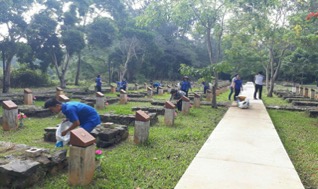 | Đoàn viên thanh niên VNpost, PVN tổ chức ra quân dọn vệ sinh tại các nghĩa trang liệt sỹ nơi trụ sở đơn vị đóng quân. |