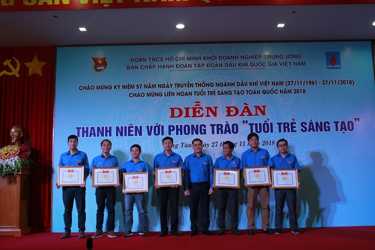 Trong khuôn khổ diễn đàn, Ban Thường vụ Đoàn Khối đã trao tặng bằng khen cho 09 tập thể và 16 cá nhân thuộc Đoàn Thanh niên Tập đoàn Dầu khí Quốc gia Việt Nam đã có thành tích xuất sắc trong thi đua đảm nhận công trình thanh niên năm 2018.