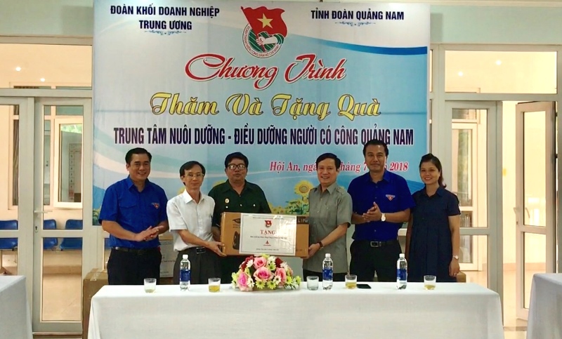 | Đồng chí Phạm Tấn Công, Phó Bí thư Đảng ủy Khối tặng quà các Mẹ Việt Nam Anh hùng tỉnh Quảng Nam trong chuỗi hoạt động “Tuổi trẻ đền ơn đáp nghĩa” và Lễ thắp nến tri ân các anh hùng liệt sỹ tại tỉnh Quảng Nam do Đoàn Khối DNTW tổ chức. |