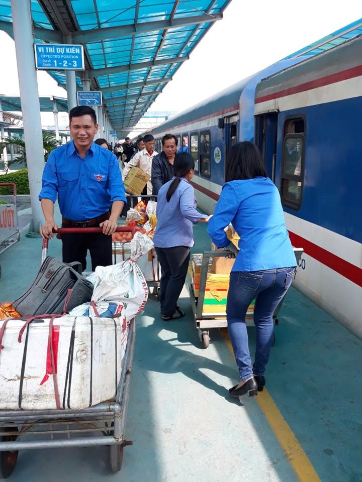 | Một số hình ảnh đoàn viên thanh niên tình nguyện tích cực ra quân hỗ trợ hành khách vận chuyển đồ tại các Nhà ga. |