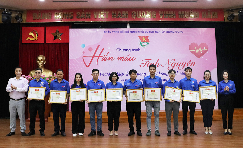 Nhân dịp này, Ban Thường vụ Đoàn Khối đã trao tặng Bằng khen cho 03 tập thể và 14 cá nhân đã có thành tích xuất sắc trong phong trào hiến máu tình nguyện năm 2023.