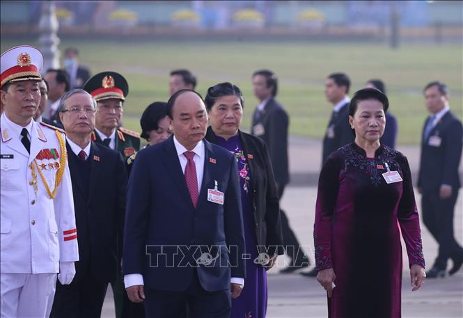 Sáng 25/1, trước giờ khai mạc phiên họp trù bị Đại hội đại biểu toàn quốc lần thứ XIII của Đảng, các đồng chí Ủy viên Bộ Chính trị: Thủ tướng Chính phủ Nguyễn Xuân Phúc, Chủ tịch Quốc hội Nguyễn Thị Kim Ngân, Thường trực Ban Bí thư Trần Quốc Vượng; Bí thư Trung ương Đảng, Chủ tịch Ủy ban Trung ương Mặt trận Tổ quốc Việt Nam Trần Thanh Mẫn cùng các đồng chí Ủy viên Bộ Chính trị, Bí thư Trung ương Đảng và đại biểu dự Đại hội đại biểu toàn quốc lần thứ XIII của Đảng đã đặt hoa, vào Lăng viếng Chủ tịch Hồ Chí Minh - Người sáng lập và rèn luyện Đảng ta, lãnh tụ vĩ đại của Đảng và dân tộc Việt Nam.