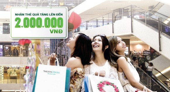 Chương trình được áp dụng tại Trung tâm thương mại Saigon Centre và Takashimaya với ưu đãi tặng thẻ quà tặng 200.000 VNĐ cho khách hàng có tổng hóa đơn đạt từ 2.000.000 VNĐ tại máy thanh toán thẻ Vietcombank ở địa điểm khuyến mãi.