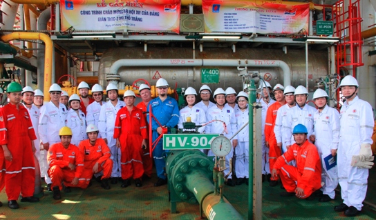 | Các đại biểu tham dự Lễ tổng kết phong trào thi đua xây dựng và đưa vào khai thác Giàn khai thác dầu khí ThTC-02 mỏ Thỏ Trắng |