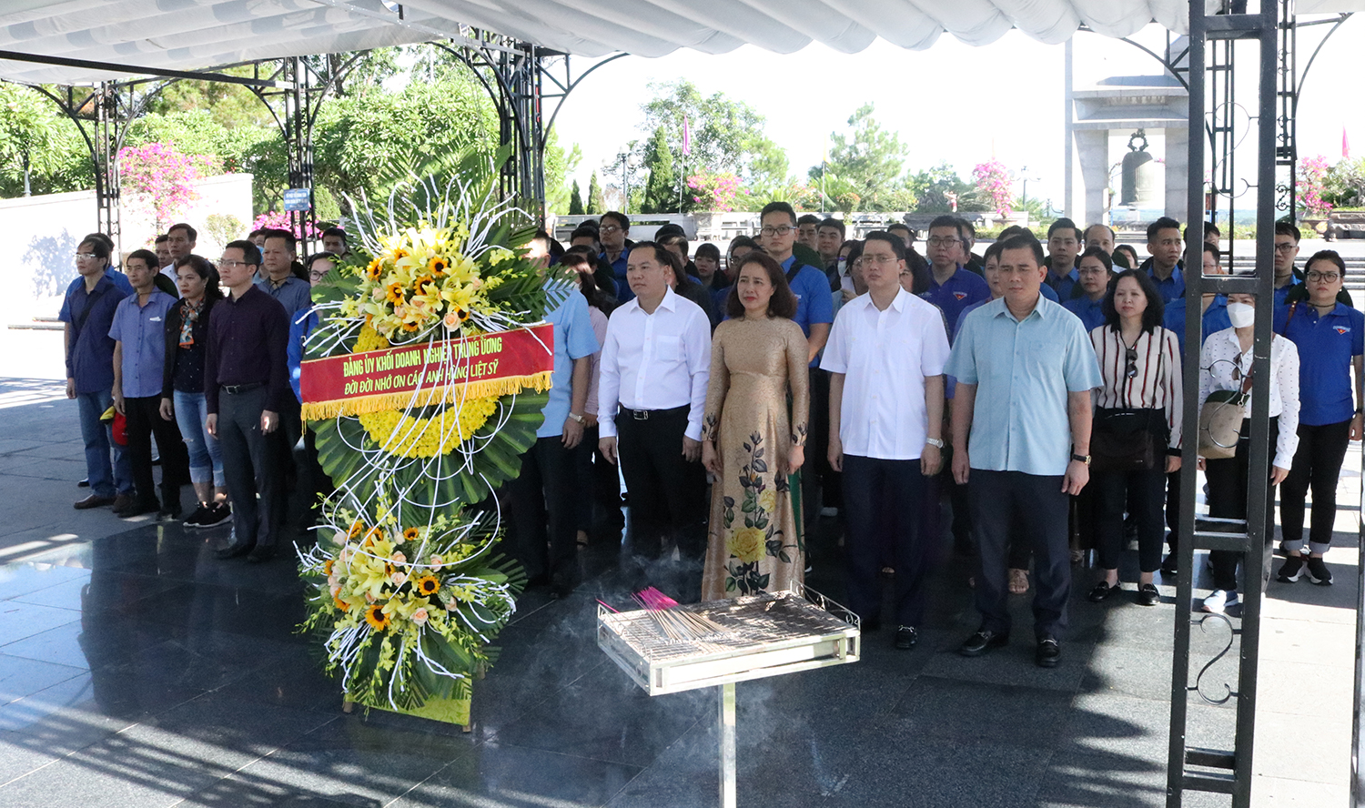 | Đoàn dâng hương tri ân các Anh hùng liệt sỹ tại Nghĩa trang Trường Sơn. |
