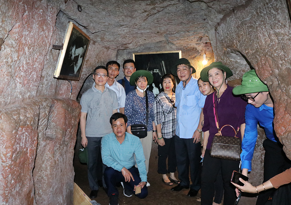 | Cán bộ, công chức và nhân viên Cơ quan Đảng uỷ Khối thăm Khu di tích địa đạo Vịnh Mốc, tỉnh Quảng Trị. |