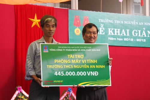 Ngày 4/9/2012, tại TP HCM, Tổng Công ty Phân bón và Hóa chất Dầu khí - CTCP (PVFCCo) cho biết, nhân dịp Lễ khai giảng năm học mới, Tổng Công ty đã trao tặng 445 triệu đồng cho Trường THCS Nguyễn An Ninh, tỉnh Bà Rịa - Vũng Tàu để trang bị 41 bộ máy tính và hệ thống mạng nội bộ cho phòng máy tính của Trường.