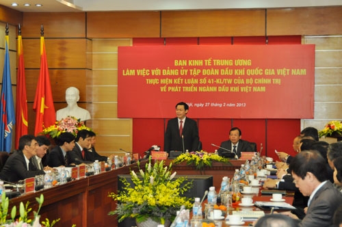 Ngày 27/2/2013, tại Hà Nội, Ban Kinh tế Trung ương tổ chức buổi làm việc với Tập đoàn Dầu khí Quốc gia Việt Nam (Petrovietnam) về việc thực hiện Kết luận số 41-KL/TW của Bộ Chính trị về phát triển ngành Dầu khí Việt Nam.