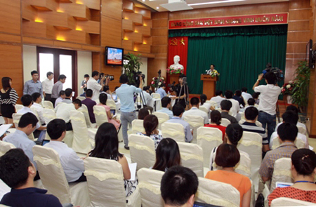 Cuộc họp báo của Vinacomin về hai dự án bauxite Tây Nguyên - Ảnh VGP/Nguyên Linh |