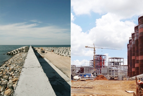 Công trình đê lấn biển Bình Thuận và công trình Tổ hợp Alumin Nhân Cơ (bên phải)