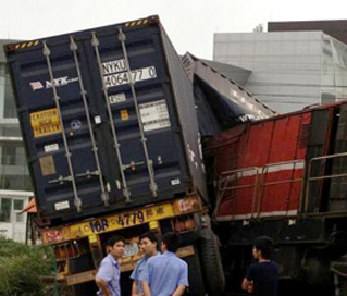 Đầu máy xe lửa và một đoạn khoảng 30m đường sắt cũng bị hư hỏng nhẹ, một toa tàu gần đầu máy bị nghiêng do trật bánh khỏi đường ray. Lực lượng cứu hộ đã tiến hành cẩu, kéo, di chuyển xe container, đầu tàu và toa tàu ra khỏi hiện trường.