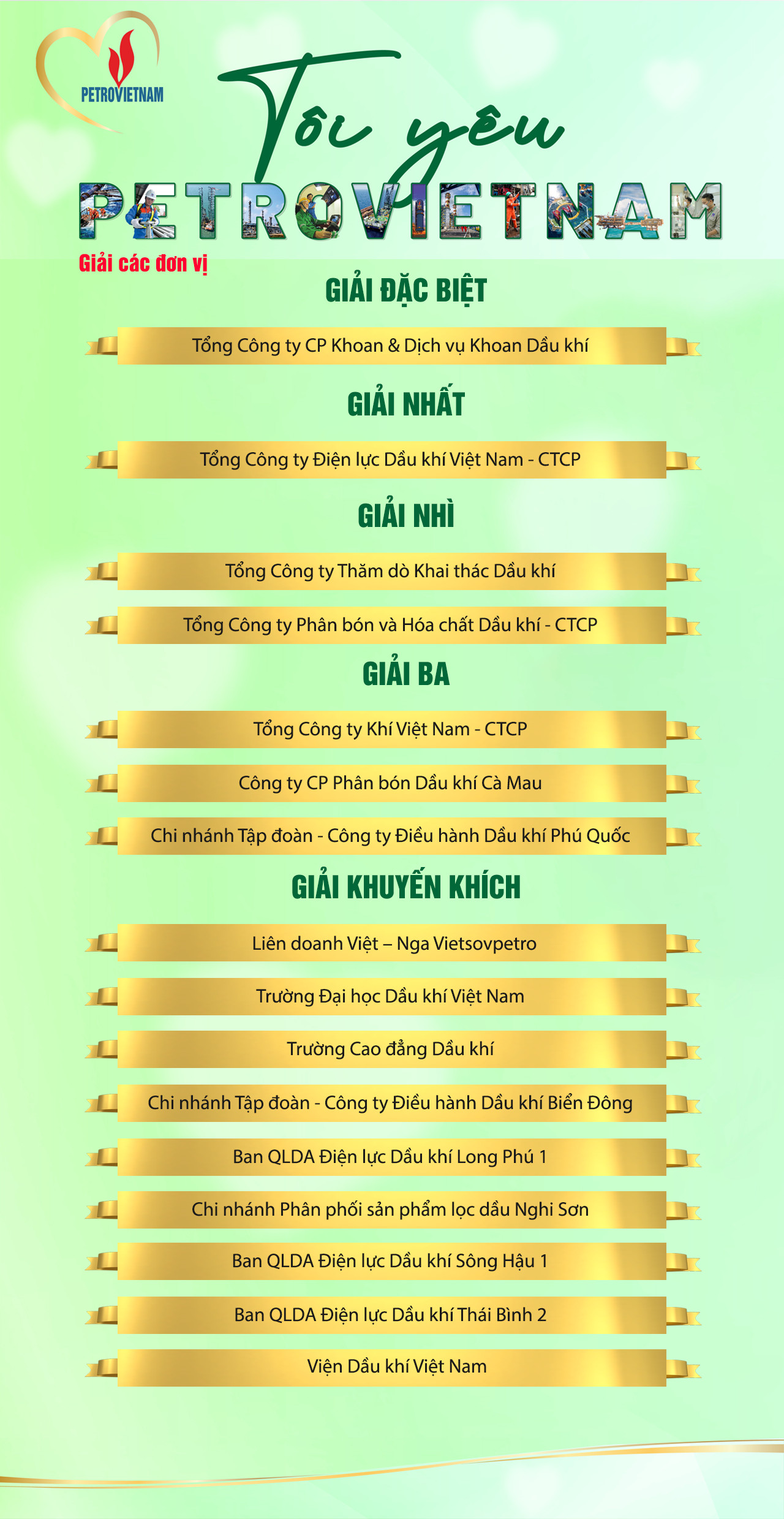 Tổng kết cuộc thi “Tôi yêu Petrovietnam”, đồng chí Trần Quang Dũng - Ủy viên Ban Thường vụ, Trưởng Ban Tuyên giao Đảng ủy, Trưởng Ban Truyền thông và Văn hóa doanh nghiệp Petrovietnam, Phó Chủ tịch Hội đồng cuộc thi cho biết, cuộc thi “Tôi yêu Petrovietnam” lần đầu tiên được tổ chức với quy mô toàn Tập đoàn đã thành công tốt đẹp, mang lại cho mỗi cán bộ, người lao động (NLĐ) những niềm vui, cảm hứng, tình yêu ngoài mong đợi và vượt mọi dự báo.