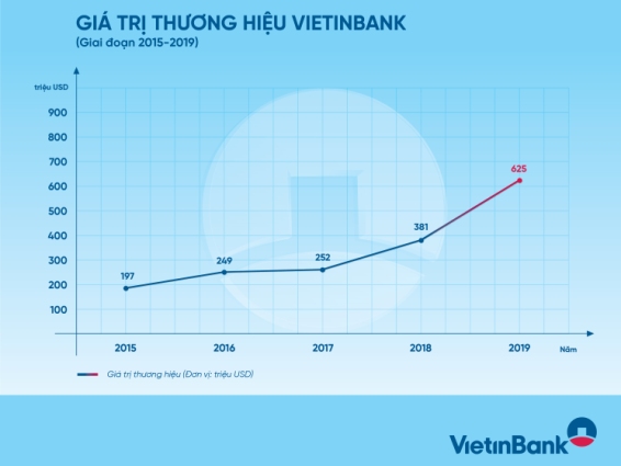 Với việc tăng trưởng về xếp hạng thương hiệu, giá trị thương hiệu, năm 2019 VietinBank đã thành công khi là ngân hàng Việt Nam đầu tiên và duy nhất vào Top 300 thương hiệu ngân hàng giá trị nhất thế giới. Điều này đã minh chứng những hướng đi đúng đắn trong công tác thương hiệu của VietinBank, đặc biệt là những nỗ lực xây dựng hình ảnh thương hiệu, đảm bảo tính nhất quán trong hoạt động truyền thông, quản trị thương hiệu, phát huy sự sáng tạo, qua đó nâng cao tài sản thương hiệu VietinBank.