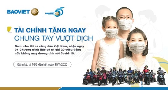 Hiện nay, dịch bệnh viêm đường hô hấp cấp do virus SARS-CoV-2 (Covid-19) đang là tâm điểm của toàn thế giới nói chung và Việt Nam nói riêng khi số lượng người nhiễm virus ngày một tăng lên nhanh chóng. Trước những diễn biến phức tạp của dịch SARS-CoV-2, với mục tiêu và sứ mệnh chăm sóc bảo vệ sức khỏe cộng đồng ngày một tốt hơn, Bảo Việt chính thức triển khai chương trình “Tài chính tặng ngay - Chung tay vượt dịch” từ ngày 16/3/2020.