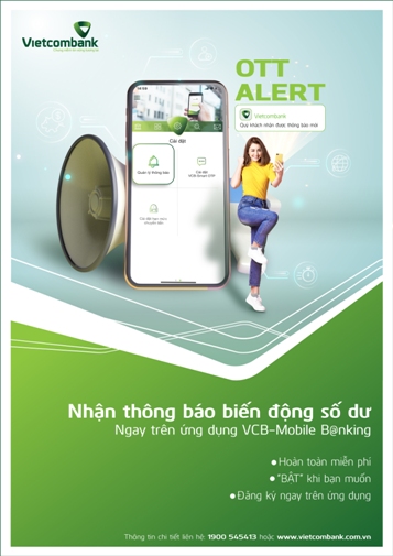 Đại diện của Ngân hàng TMCP Ngoại thương Việt Nam (Vietcombank) cho biết, khách hàng sở hữu tài khoản Vietcombank đã có thêm một lựa chọn linh hoạt để nhận thông báo biến động số dư và chi tiêu thẻ từ ngân hàng với tính năng hoàn toàn mới - OTT Alert. Với nhiều ưu điểm vượt trội hơn so với các phương thức truyền thống, thông báo “Over-The-Top” hứa hẹn sẽ đem đến trải nghiệm đầy thú vị cho người dùng.