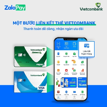 Từ ngày 17/08/2020, Ngân hàng TMCP Ngoại thương Việt Nam (Vietcombank) hợp tác cùng Công ty cổ phần ZION cho phép khách hàng liên kết trực tiếp thẻ ghi nợ cá nhân Vietcombank vào ví điện tử ZaloPay. Theo đó, khách hàng có thể nạp tiền từ thẻ ghi nợ (nội địa/quốc tế) do Vietcombank phát hành vào ví điện tử ZaloPay, rút tiền từ ví điện tử ZaloPay về thẻ ghi nợ Vietcombank, thoải mái trải nghiệm thanh toán trong 2 giây.