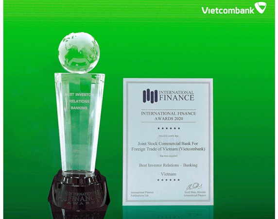 Từ đó, Vietcombank đã tiếp tục được nhiều tổ chức, định chế tài chính quốc tế ghi nhận và đánh giá cao. Bên cạnh các giải thưởng uy tín và danh giá của Forbes, Brand Finance và The Asian Banker,… tạp chí International Finance Magazine cũng vừa trao tặng cho Vietcombank 02 giải thưởng là: Best Risk Management Bank (Ngân hàng quản trị trị rủi ro tốt nhất) và Best Investor Relations - Banking and Finance (Ngân hàng có quan hệ đầu tư tốt nhất trong ngành tài chính - ngân hàng).