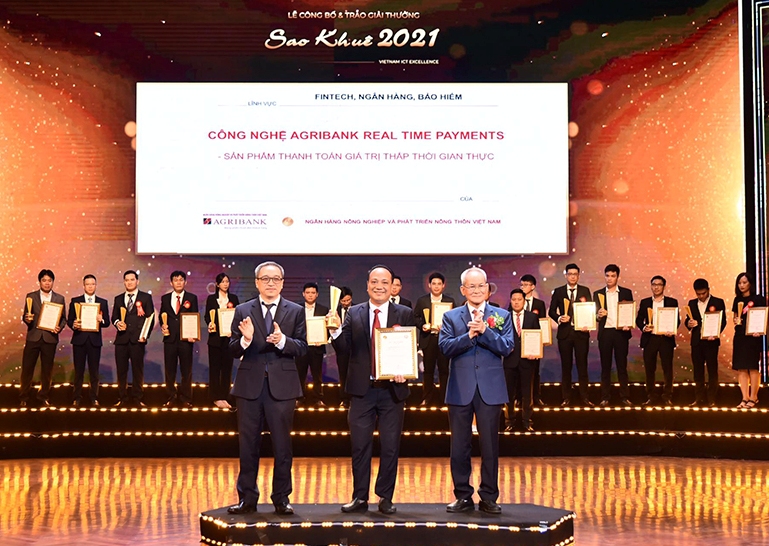 Dựa trên nền tảng công nghệ thông tin (CNTT) hiện đại với khả năng thanh toán mạnh mẽ và nhanh chóng, Công nghệ Agribank Realtime Payments - Sản phẩm thanh toán giá trị thấp thời gian thực của Ngân hàng Nông nghiệp & Phát triển nông thôn Việt Nam (Agribank) đã đạt Giải thưởng Sao Khuê 2021 cho Hệ thống CNTT Xuất sắc trong lĩnh vực Ngân hàng. Đây là năm thứ 6 liên tiếp Agribank có phần mềm/hệ thống xuất sắc đạt giải thưởng Sao Khuê trong lĩnh vực này.