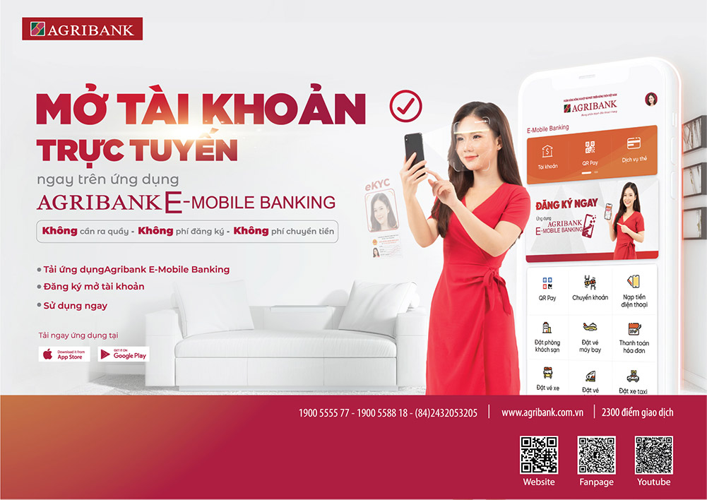Ngày 2/9, Ngân hàng Nông nghiệp & Phát triển nông thôn Việt Nam (Agribank) chính thức triển khai dịch vụ mở tài khoản trực tuyến ngay trên ứng dụng Agribank E-Mobile Banking bằng công nghệ định danh điện tử (eKYC). Theo đó, khách hàng mở tài khoản nhanh chóng, mọi lúc, mọi nơi và sử dụng ngay mà không cần đến ngân hàng. Giải pháp eKYC của Agribank góp phần nâng cao trải nghiệm khách hàng, đơn giản hóa quy trình mở tài khoản, trong bối cảnh dịch Covid-19 diễn biến phức tạp.