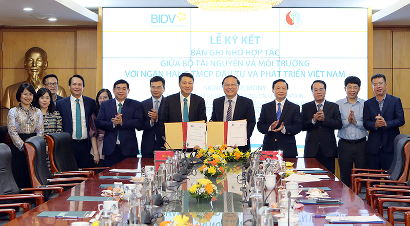 Bộ TNMT và BIDV ký Bản ghi nhớ hợp tác thúc đẩy phát triển tài chính xanh bền vững, bảo vệ môi trường và ứng phó với biến đổi khí hậu
