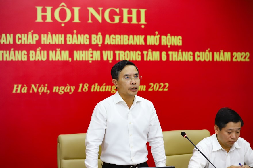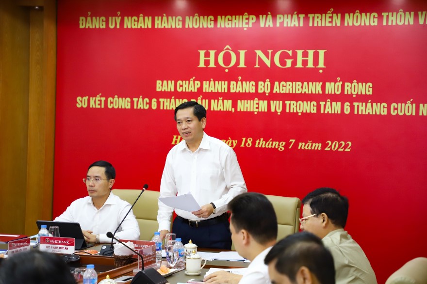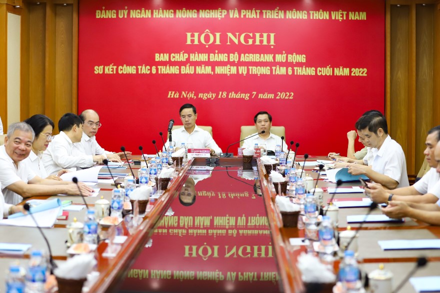 Ngày 18/7/2022, tại Hà Nội, Đảng ủy Ngân hàng Nông nghiệp & Phát triển nông thôn Việt Nam (Agribank) tổ chức Hội nghị Ban Chấp hành Đảng bộ mở rộng nhằm đánh giá kết quả công tác 6 tháng đầu năm và triển khai nhiệm vụ trọng tâm 6 tháng cuối năm 2022. Hội nghị được tổ chức bằng hình thức trực tiếp và trực tuyến với điểm cầu chính tại Trụ sở chính Agribank, số 2 Láng Hạ, Hà Nội và các điểm cầu kết nối các chi, đảng bộ trực thuộc; các chi nhánh trong toàn hệ thống.
