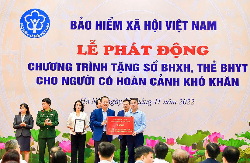 Với mong muốn nhận được sự chung tay, góp sức của cộng đồng xã hội với ngành bảo hiểm xã hội (BHXH) Việt Nam, giúp nhiều người lao động được tham gia BHXH, nhiều người dân được chăm sóc sức khoẻ bằng bảo hiểm y tế (BHYT), sáng ngày 23/11/2022, BHXH Việt Nam tổ chức Lễ Phát động chương trình tặng sổ BHXH, thẻ BHYT cho người có hoàn cảnh khó khăn.
