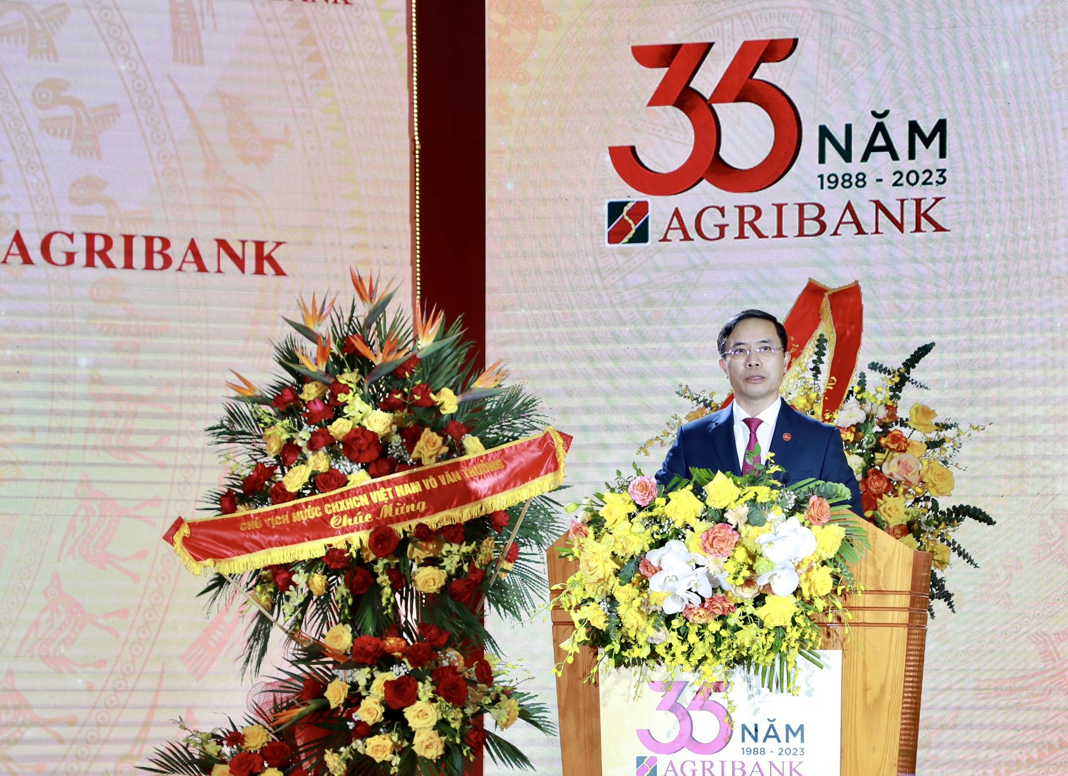 Diễn văn tại buổi Lễ, đồng chí Phạm Đức Ấn, Bí thư Đảng ủy, Chủ tịch HĐTV Agribank đã khái quát quá trình 35 năm phát triển của Agribank. Đồng chí cho biết: Trước yêu cầu đổi mới và phát triển của đất nước, tháng 3/1988, hệ thống ngân hàng Việt Nam được tổ chức lại thành 2 cấp gồm Ngân hàng Nhà nước thực hiện chức năng quản lý, điều hành chính tiền tệ và các ngân hàng chuyên doanh thực hiện chức năng kinh doanh tiền tệ, ngân hàng. Thực hiện chủ trương này, ngày 26/3/1988, Ngân hàng Nông nghiệp và Phát triển Nông thôn Việt Nam (Agribank) với tên gọi ban đầu là Ngân hàng Phát triển Nông nghiệp Việt Nam được thành lập với nhiệm vụ chính là đáp ứng nhu cầu vốn tín dụng và dịch vụ ngân hàng phục vụ phát triển kinh tế- xã hội khu vực nông nghiệp, nông thôn. Từ năm 1996, Agribank chính thức chuyển đổi thành Ngân hàng thương mại kinh doanh đa năng, với tên gọi Ngân hàng Nông nghiệp và Phát triển Nông thôn Việt Nam theo Quyết định số 280/QĐ-NHNN ngày 15/11/1996 của Thống đốc NHNN.