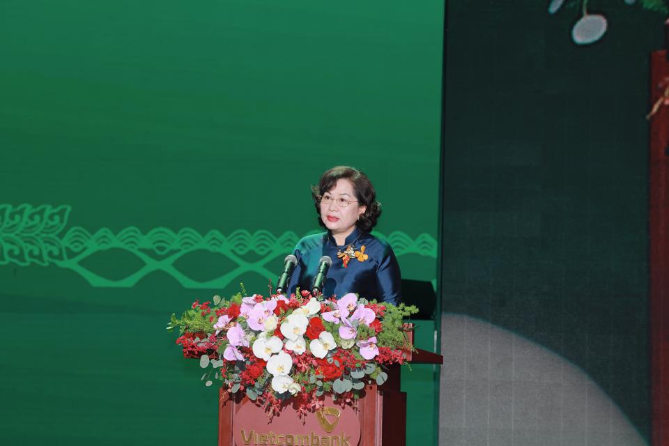 Phát biểu tại Lễ kỷ niệm, Thống đốc Ngân hàng Nhà nước Việt Nam Nguyễn Thị Hồng đánh giá, ở bất cứ giai đoạn lịch sử nào, Vietcombank cũng không ngừng nỗ lực phấn đấu, hoàn thành tốt vai trò tiên phong, chủ lực, chủ đạo của một ngân hàng thương mại trụ cột, đi đầu trong thực hiện các chủ trương, chính sách của Đảng, Quốc hội, Nhà nước, Chính phủ và của ngành Ngân hàng trong từng thời kì. Thống đốc đề nghị Hội đồng quản trị, Ban điều hành cùng toàn thể cán bộ, nhân viên Vietcombank kế thừa những thành tựu xuất sắc mà Vietcombank đã đạt được trong 60 năm qua và phát huy cao độ bản lĩnh, trí tuệ, tinh thần đổi mới, sáng tạo để tiếp tục đưa Vietcombank phát triển mạnh mẽ, an toàn, hiệu quả, bền vững trong giai đoạn tới. Thống đốc nhấn mạnh, Vietcombank cần tiếp tục phát huy tốt vai trò dẫn dắt thị trường và đi đầu trong thực hiện chủ trương, chính sách của Đảng, Nhà nước và của Ngành, đóng góp nhiều hơn nữa vào sự nghiệp đổi mới, phát triển, hội nhập đất nước, đặc biệt là trong việc đảm bảo môi trường kinh doanh tiền tệ, ngân hàng lành mạnh, ổn định, an toàn, hiệu quả, góp phần ổn định kinh tế vĩ mô, kiểm soát lạm phát, hỗ trợ tăng trưởng kinh tế, xứng đáng với vai trò là ngân hàng thương mại trụ cột, hàng đầu trong hệ thống ngân hàng Việt Nam.