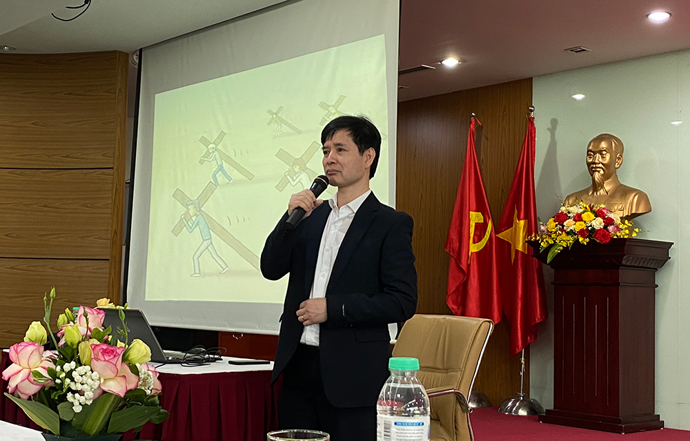 | PGS.TS Hoàng Anh, Vụ trưởng Vụ Tổ chức cán bộ, Học viện Chính trị Quốc gia Hồ Chí Minh truyền đạt nội dung của Chuyên đề năm 2023. |