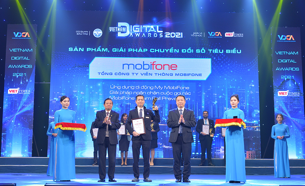 Tổng công ty Viễn thông MobiFone vừa vinh dự đón nhận giải thưởng “Sản phẩm, dịch vụ, giải pháp công nghệ số tiêu biểu” với ứng dụng di động My MobiFone và Giải pháp ngăn chặn cuộc gọi rác (MobiFone Spam Call Prevention) tại Lễ trao giải thưởng Chuyển đổi số Việt Nam - Vietnam Digital Awards (VDA) năm 2021. Đây là giải thưởng thường niên do Hội Truyền thông số Việt Nam (VDCA) tổ chức và được trao cho những giải pháp chuyển đổi số của các đơn vị, tổ chức có thành tựu trong công cuộc chuyển đổi số, phát triển kinh tế số của Việt Nam.