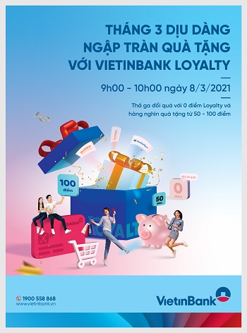 Nhằm mang đến trải nghiệm bất ngờ thú vị trong tháng 3 ý nghĩa, kể từ ngày 8/3, VietinBank Loyalty triển khai Chương trình ưu đãi đổi điểm thưởng. Đặc biệt, trong khung giờ “vàng” (từ 9h-10h ngày 8/3), khách hàng có thể sở hữu ngay quà tặng giá trị lớn với mức quy đổi 0 điểm.
