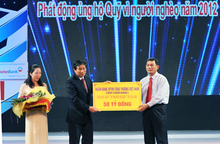 Tại chương trình giao lưu “Doanh nhân Thủ đô Tâm & Tài”, VietinBank đã ủng hộ 50 tỷ đồng cho Quỹ Vì người nghèo năm 2012…