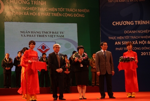 Ngày 10/3/2013, tại Hà Nội đã diễn ra chương trình trao tặng giải thưởng “Doanh nghiệp thực hiện tốt trách nhiệm xã hội và phát triển cộng đồng” do Bộ Kế hoạch và Đầu tư chủ trì phát động. BIDV nằm trong top 10 doanh nghiệp được lựa chọn trao tặng chứng nhận trong tổng số 75 doanh nghiệp tham gia. Ủy viên HĐQT - Chủ tịch Công đoàn BIDV Lê Thị Kim Khuyên đại diện BIDV nhận giải thưởng này.