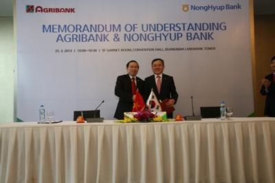 Ngày 25/3/2013, Chủ tịch Hội đồng thành viên Agribank Nguyễn Ngọc Bảo và Chủ tịch Ngân hàng Nông nghiệp Hàn Quốc (NongHuyp Bank) Shin Chung Shik ký kết thỏa thuận hợp tác toàn diện giữa hai Ngân hàng.