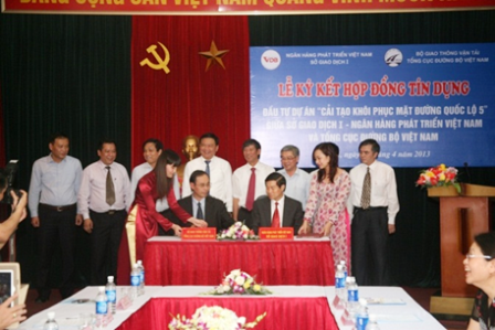 Ngày 17/4/2013, tại Hà Nội, Ngân hàng Phát triển Việt Nam (NHPT) và Tổng cục Đường bộ Việt Nam (Bộ Giao thông Vận tải) đã ký kết hợp đồng đầu tư Dự án “Cải tạo, khôi phục mặt đường Quốc lộ 5” với tổng mức đầu tư khoảng 794 tỷ đồng.