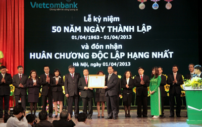 Sáng nay 1/4 tại Hà Nội, Ngân hàng Ngoại thương Việt Nam (Vietcombank) tổ chức kỷ niệm 50 năm thành lập và đón nhận Huân chương Độc lập hạng Nhất.