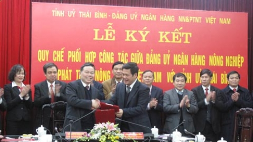Ngày 16/12, tại TP Thái Bình, Tỉnh ủy Thái Bình và Đảng ủy Ngân hàng Nông nghiệp và Phát triển nông thôn (Agribank) tổ chức lễ ký kết Quy chế phối hợp công tác.