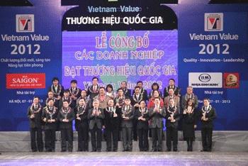 | Ngày 07/01/2013, tại Nhà hát lớn Hà Nội, Hội đồng Thương hiệu Quốc gia đã tổ chức lễ trao giải thưởng Thương hiệu Quốc gia cho 54 doanh nghiệp có các sản phẩm, dịch vụ hàng đầu đại diện cho các lĩnh vực, ngành hàng... | ||