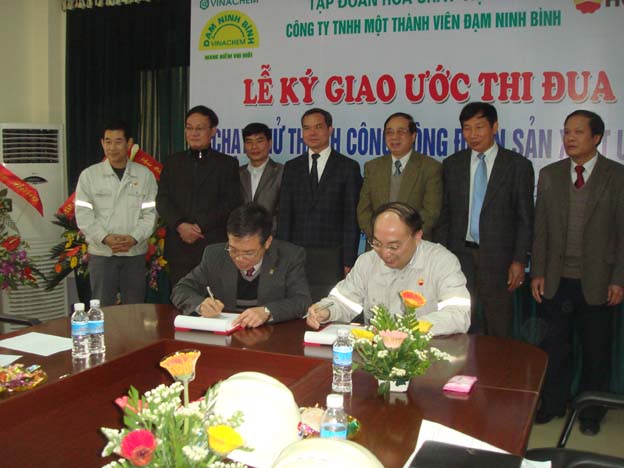 Ngày 18/02/2012, tại Công ty TNHH Một thành viên Đạm Ninh Bình, Tập đoàn Hóa chất Việt Nam (Vinachem) và Công đoàn Công nghiệp Hóa chất Việt Nam (CĐ CN HCVN) đã long trọng tổ chức Lễ ký Giao ước thi đua giữa Chủ đầu tư và Nhà thầu EPC để thực hiện kế hoạch chạy máy ra sản phẩm Urê và hoàn thành công tác chạy thử 72 giờ, tiến tới đưa Nhà máy Đạm Ninh Bình đi vào hoạt động thương mại trong cuối tháng 3 năm 2012 nhằm lập thành tích thiết thực chào mừng kỷ niệm ngày thành lập Đảng, kỷ niệm 20 năm tái lập tỉnh Ninh Bình.