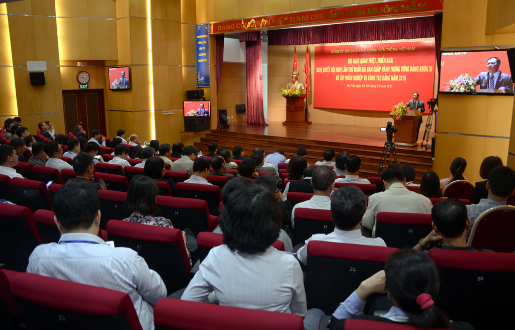 Vừa qua, tại Hà Nội, Đảng ủy Tập đoàn Bưu chính Viễn thông Việt Nam (VNPT) đã tổ chức Hội nghị quán triệt Nghị quyết Hội nghị lần thứ 12 Ban Chấp hành Trung ương Đảng (khóa XI) và tập huấn nghiệp vụ công tác Đảng năm 2015 cho hơn 300 đại biểu là bí thư, phó bí thư, cán bộ chuyên trách công tác Đảng của các Đảng bộ, Chi bộ trực thuộc.