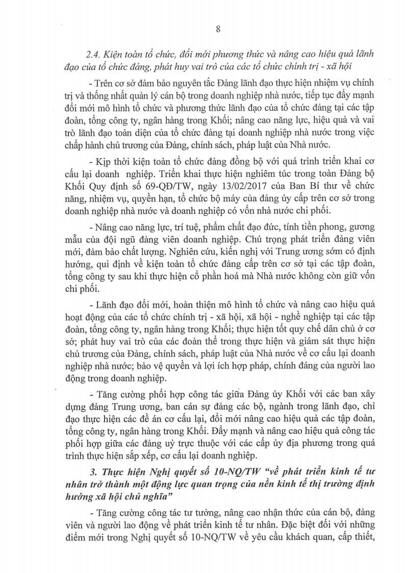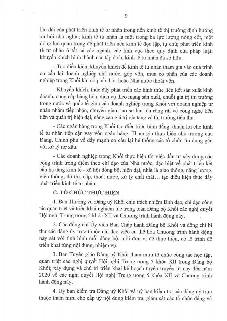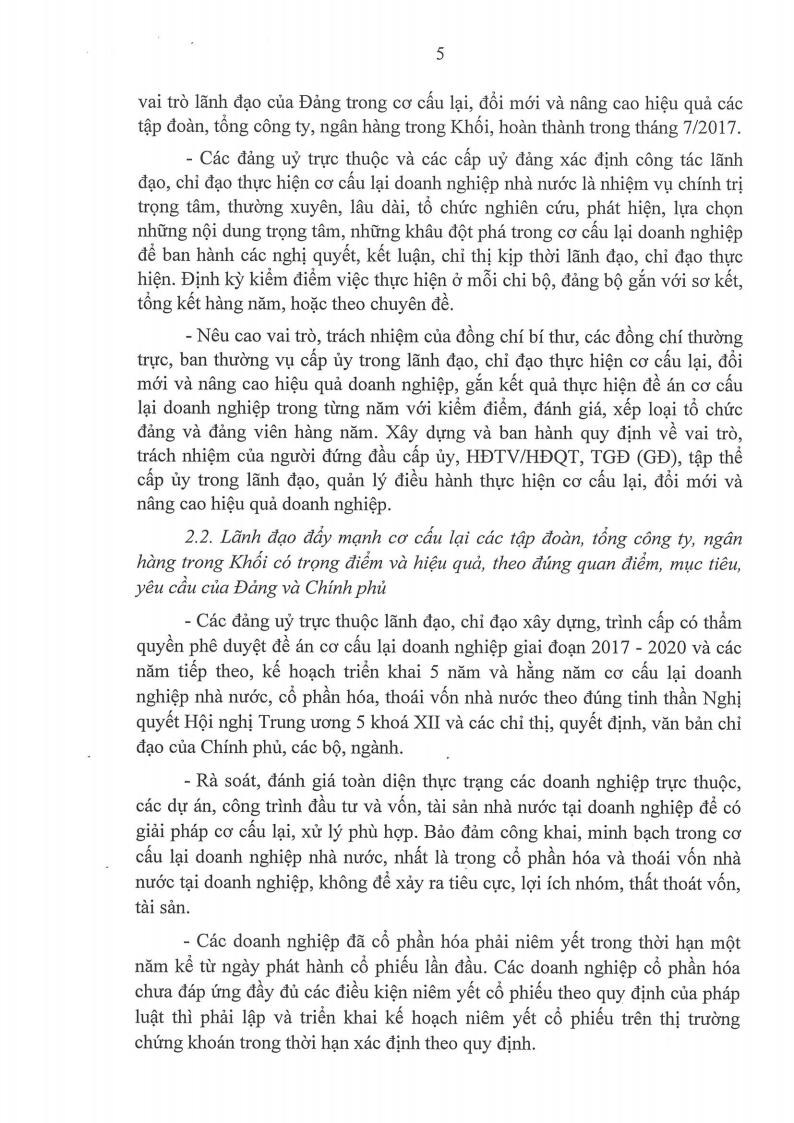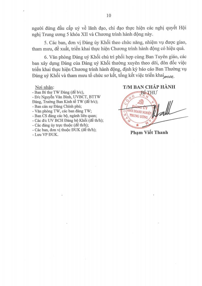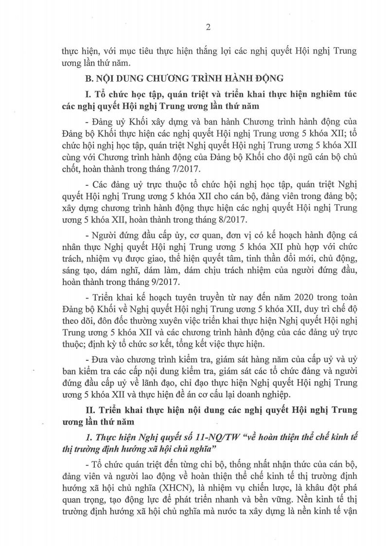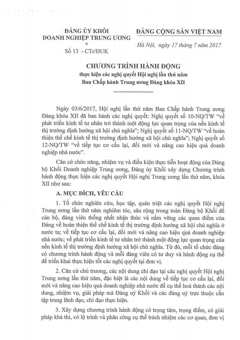Ngày 17/7/2017, Đảng ủy Khối Doanh nghiệp Trung ương đã ban hành Chương trình hành động thực hiện các nghị quyết Hội nghị lần thứ năm Ban Chấp hành Trung ương Đảng khóa XII.