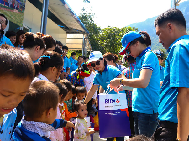 Sau những cái bắt tay chào hỏi, những vòng ôm thân ái,... chúng tôi cùng bà con, thầy cô và học sinh thực hiện những nghi thức của chương trình trao tặng: Gắn biển trường, trồng cây lưu niệm, trao các phần quà bé nhỏ cho các em học sinh... Chúng tôi thấy được niềm vui của các em nhỏ và thầy cô giáo khi được trao tặng một ngôi trường nhỏ nhưng ấm áp với đầy đủ cơ sở vật chất và trang thiết bị học tập. Mọi mệt mỏi, khó khăn mà chúng tôi gặp phải đều tan biến khi “Mái trường xanh BIDV” do BIDV Hà Nội tài trợ xây dựng được hoàn thành và trao đến tận tay người nhận. Một lần nữa, BIDV Hà Nội tạo thêm dấu ấn đẹp nơi biên cương Tổ quốc.