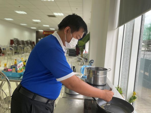 | Ai cũng có gia đình cần được lo lắng, yêu thương và chăm sóc nhưng người cán bộ BIDV sẵn sàng để lại rất nhiều lo toan cho gia đình nhỏ ở nhà để nghiêm túc thực hiện chế độ làm việc “3 tại chỗ”, đảm bảo hoạt động giao dịch của chi nhánh thông suốt, giảm thiếu tối đa nguy cơ lây nhiễm dịch bệnh Covid-19. Thời Covid-19, lãnh đạo cũng trở thành “anh nuôi’. Cán bộ ngân hàng cũng có thể trở thành thợ cắt tóc chuyên nghiệp, thợ làm kính chắn giọt bắn cho đồng nghiệp. |