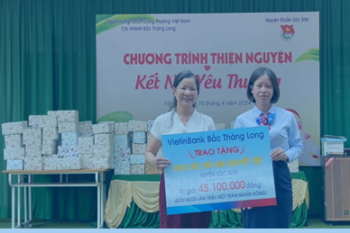 Bên cạnh sự chỉ đạo quyết liệt thực hiện đưa công nghệ số vào đời sống, Chi bộ VietinBank Bắc Thăng Long còn luôn quan tâm chú trọng công tác từ thiện, ASXH trên địa bàn huyện Sóc Sơn. Chỉ tính từ năm 2023 - 2024 với tinh thần “tương thân tương ái, thương người như thể thương thân” đơn vị đã thực hiện tặng quà cho phụ nữ có hoàn cảnh khó khăn đón lễ 30/4; tặng quà cho trẻ em tại Trường nuôi dưỡng trẻ em khuyết tật; tặng quà, học bổng cho học sinh nghèo vượt khó; Tháng nhân đạo năm 2024… Những việc làm ý nghĩa thiết thực đó đã được lãnh đạo địa phương và bà con ghi nhận, đánh giá cao.