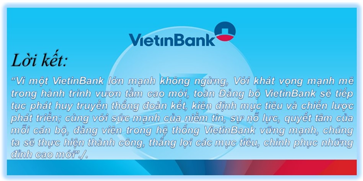 Với tinh thần quyết tâm và đổi mới, Đảng ủy, Ban Lãnh đạo cùng toàn hệ thống Ngân hàng VietinBank sẽ tiếp tục đoàn kết một lòng, nỗ lực phấn đấu hoàn thành xuất sắc các mục tiêu, nhiệm vụ đã đề ra, giữ vững danh hiệu là một trong những lá cờ đầu của Đảng bộ Khối Doanh nghiệp Trung ương và đóng góp tích cực cho nền kinh tế.